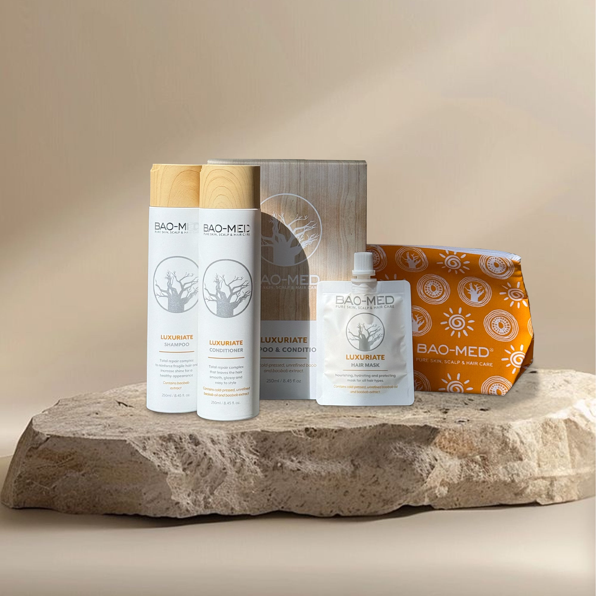 The Bao-Med range is developed to offer the exceptional care properties of the fruit from Africa’s baobab trees, to everyday cosmetics and beauty supplements. The products are formulated using different elements of the baobab fruit. Such as pure, cold-extracted oil and pure baobab fruit powder as its key ingredients. Each product has unique benefits for improving and maintaining healthy hair, skin and nails.